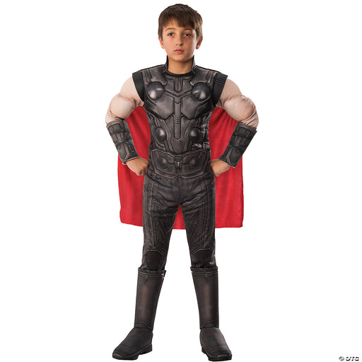 Rubie'sNow your child can become Thor from the blockbuster movie Avengers: Endgame! Costume includes Padded jumpsuit with attached boot covers belt and cape.