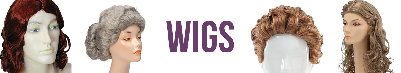 Find a wide range of wigs for all your needs, from historical re-enactment to cosplay, theatre productions and Halloween hilarity. We have wigs for men, women, and children in a wide range of styles and colors.