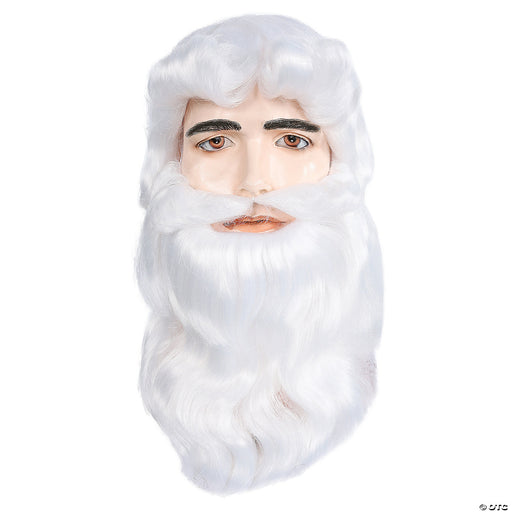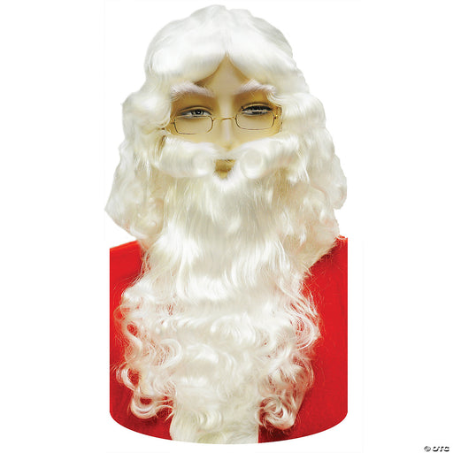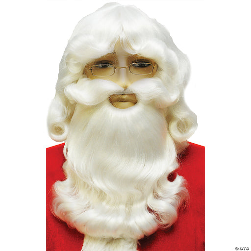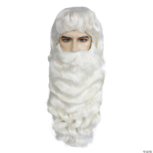 No Santa Claus costume is complete without the wig and beard! Our beautiful Kanekalon rental-quality set comes with a fine skin-top wig with an exc...