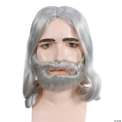 Lacey WigsA deluxe synthetic biblical wig with skin part human-hair beard and human-hair hand-made lace mustache. One size fits most adults.