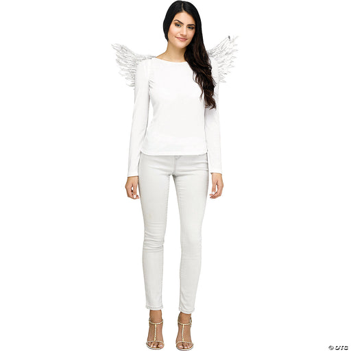 Fun WorldIncludes white nylon wings with wire edges, silver glitter accents, elastic shoulder straps and a silver tinsel halo on a headband. One size fits m...