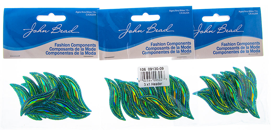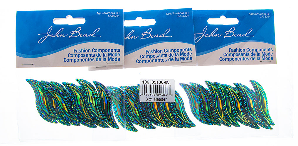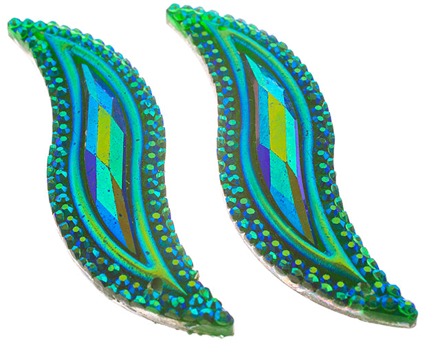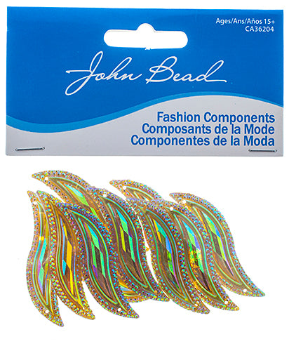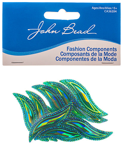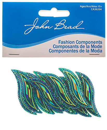 Resin Sew-On Peacock 10pcs 14x47mm Celestial