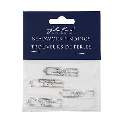 Beadwork Findings Pendant Rectangle with Leaves 8x34mm 4pcs