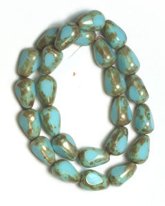 Fire-Polished 12x8mm Opaque Turquoise Marble Coated Pear Shape Bead