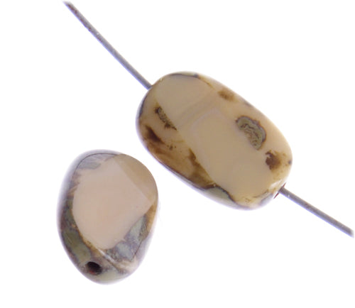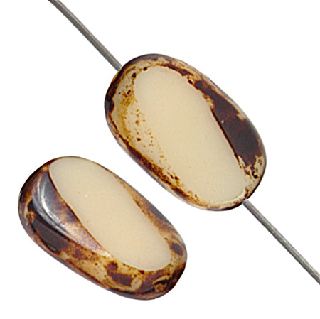 Fire-Polished 14x8mm Opaque Marble Edge Rectangular Bead