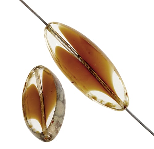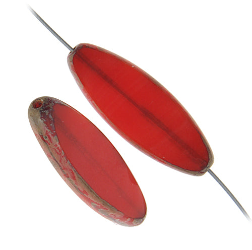 Fire-Polished 30x11mm Cut Flat Oval with Marble Edge