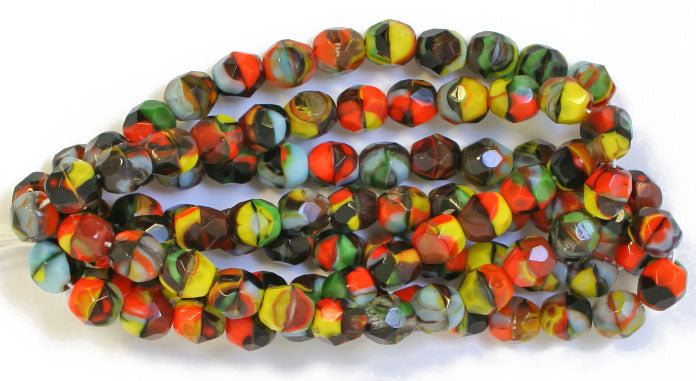 Fire/Polished 7mm Crystal Tri Beads Strung