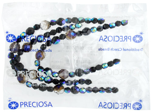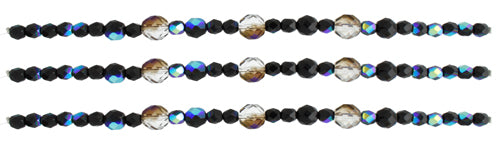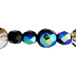 Fire-Polished Beads Mix Of 6/8mm Round Black AB Half Coating With 10mm Round Crystal/Azuro