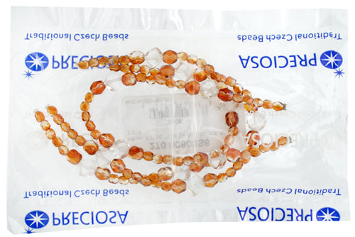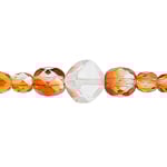 Fire-Polished Beads Mix Of 4/6mm Round Dark Apricot Full Coating & 8mm Fancy Transparent Crystal