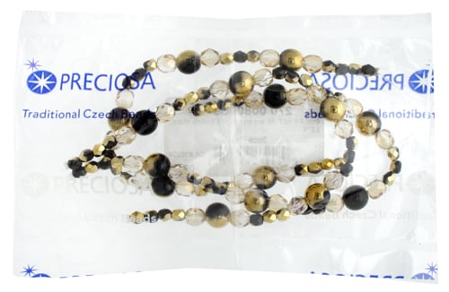 Fire-Polished Beads Mix Of 4mm Round & 8mm Round Black/Amber Half Coat & Fire-Polished 6mm Round Crystal/Clarit
