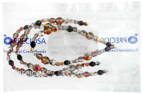 Fire-Polished Beads Mix Of 4/6/8mm Round Crystal/Santander W/ Fire-Polished 6mm Rondelle Black