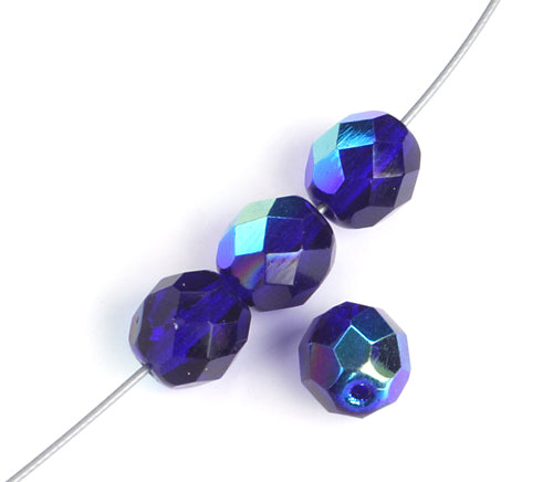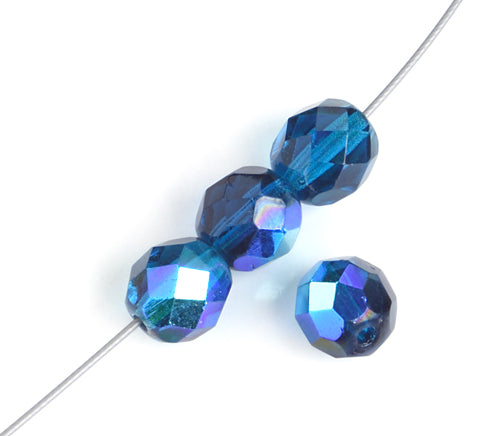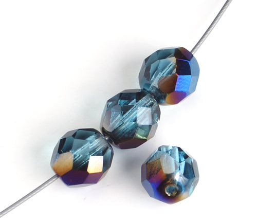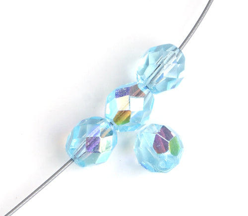 Fire-Polished 8mm Round Beads - Transparent Blue Shades