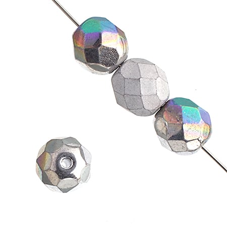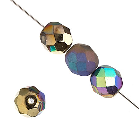 Fire-Polished Round Beads 6mm Opaque - Metallic Shades