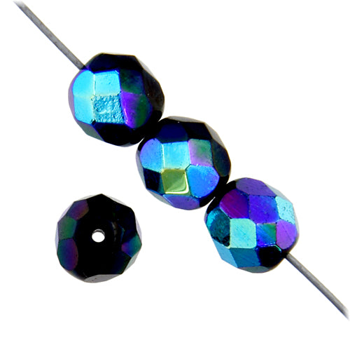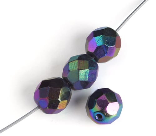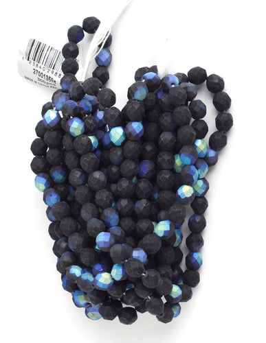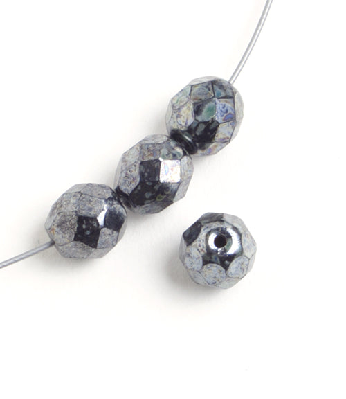 Fire-Polished 8mm Round Beads - Black/Grey Shades