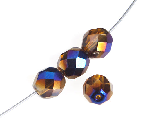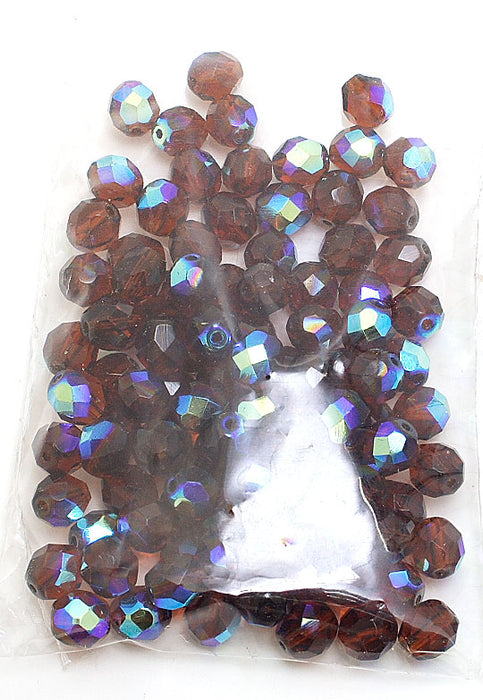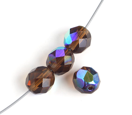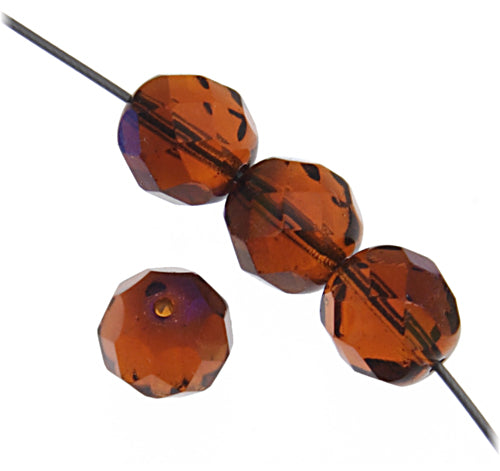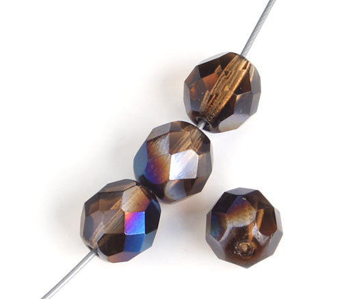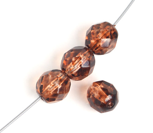 Fire-Polished 8mm Round Beads Transparent - Brown Shades