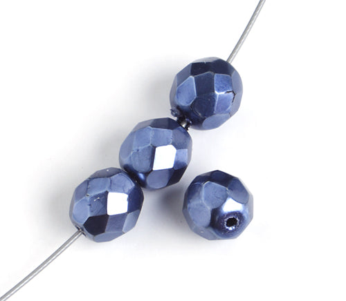 Fire-Polished 8mm Round Beads - Opaque Blue Shades