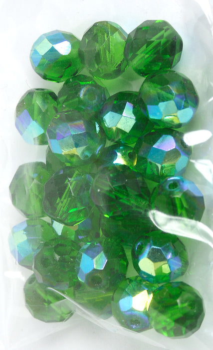 Fire-Polished Round Beads 10mm - Green Shades