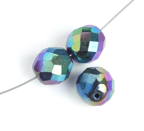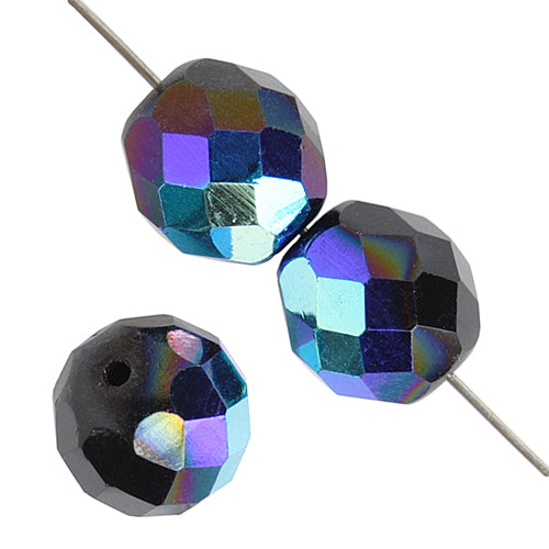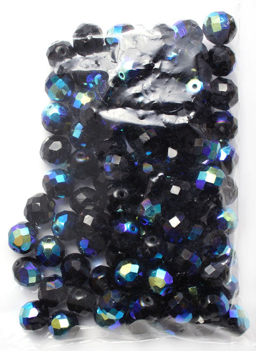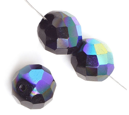 Fire-Polished Round Beads 12mm - Black/Grey Shades