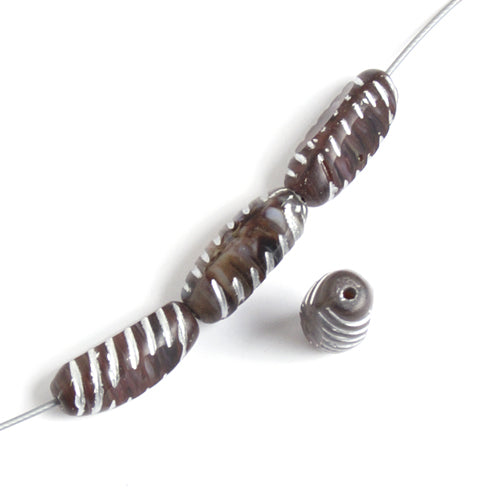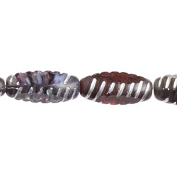 Fire-Polished Oval 15x8mm Garnet/Silver Stripe