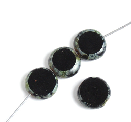 Fire-Polished Flat Cut Round 10mm Opaque Jet/Marble Edge