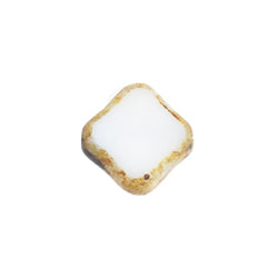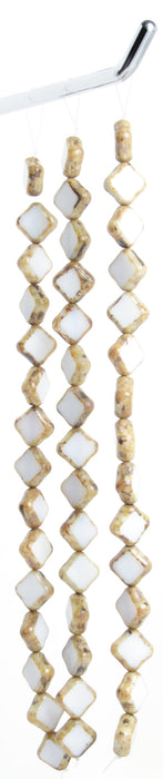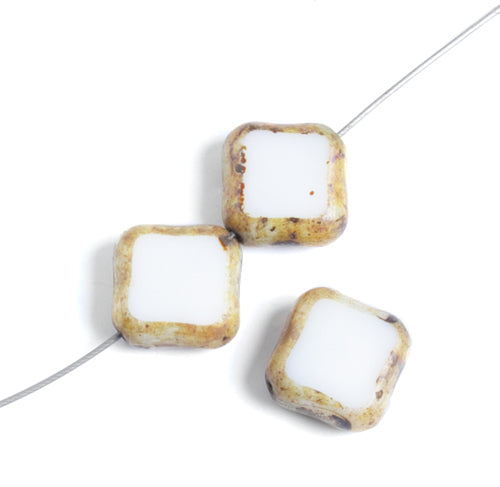 Fire-Polished Cut Square 12mm Opaque White/Marble Edges