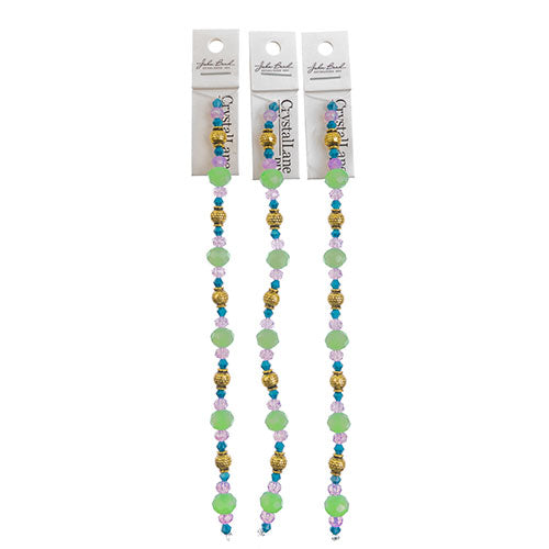 Crystal Lane DIY Designer 7in Bead Strand Glass and Metal Light Green Assorted