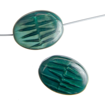 Glass Bead Oval 18x14mm Opaque Dark Green Silk