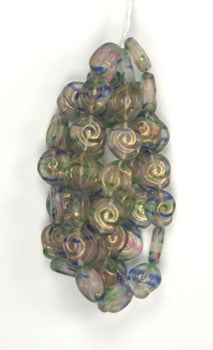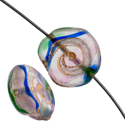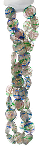 Glass Bead Swirl 12x11mm Strung Crystal/Blue/Green/Purple/Gold