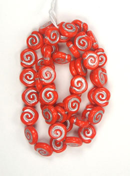 Glass Bead Swirl Opaque Orange/Silver Strung 12x11mm