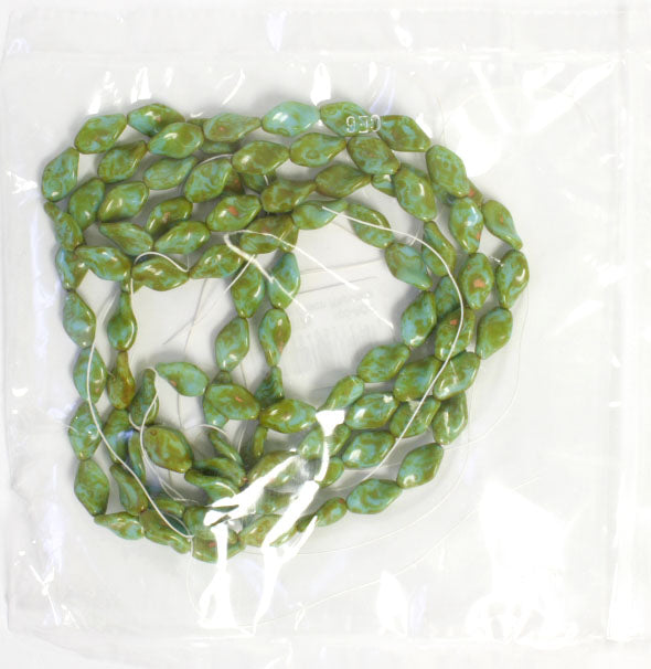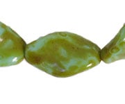 Glass Bead 13x8mm Twisted Flat Oval Blue/Green Marble Strung