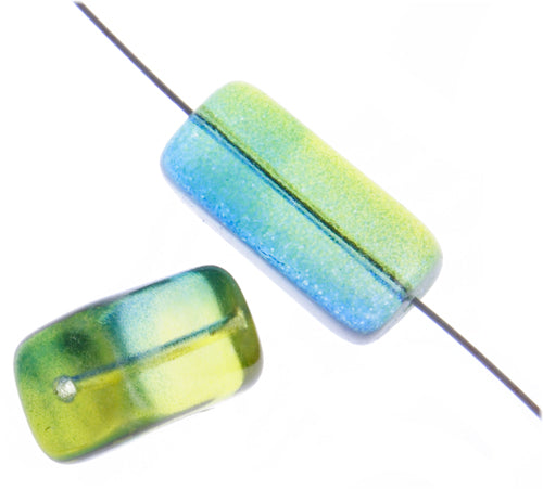Glass Long Rectangle Bead Strung 24x15mm Blue/Green/Yellow