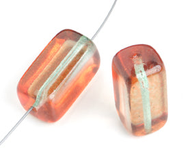 Glass Long Rectangle Bead Strung 24x15mm Orange/Teal Green