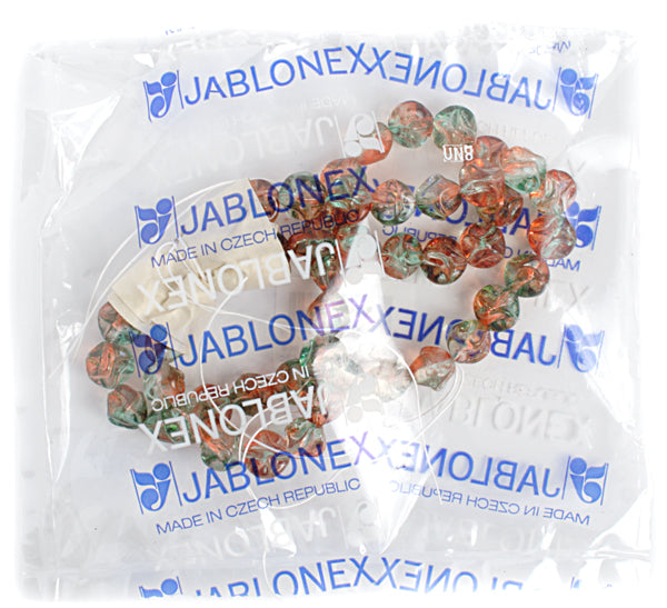 Glass Twisted 11mm Round Bead Strung Orange/Teal Green