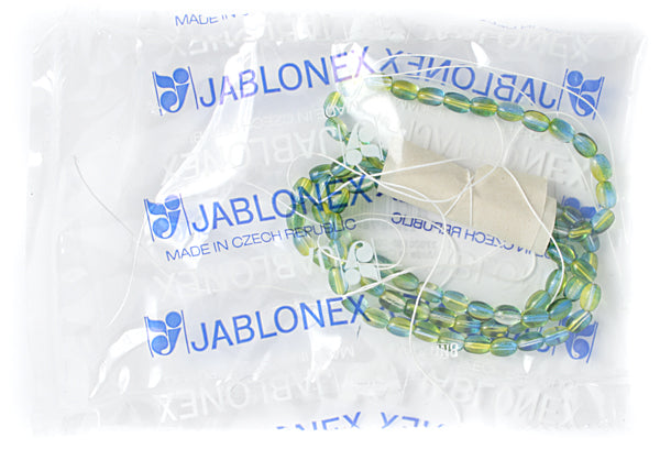 Glass Bead Oval 7x5mm Strung Blue/Green/Yellow