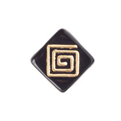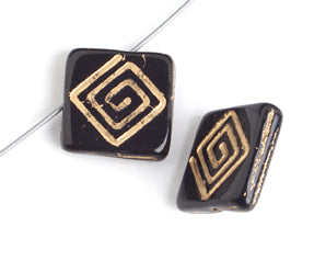 Glass Bead Flat Square 15mm Strung With Top Drill Black/Gold