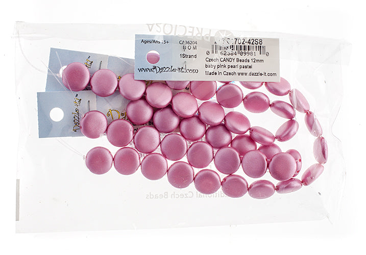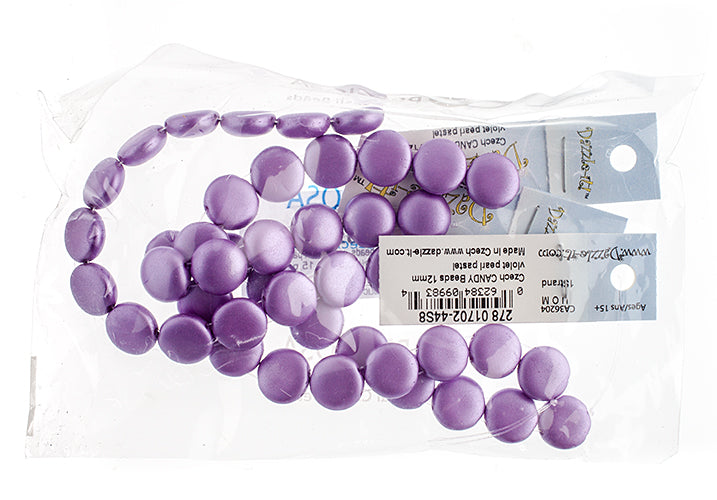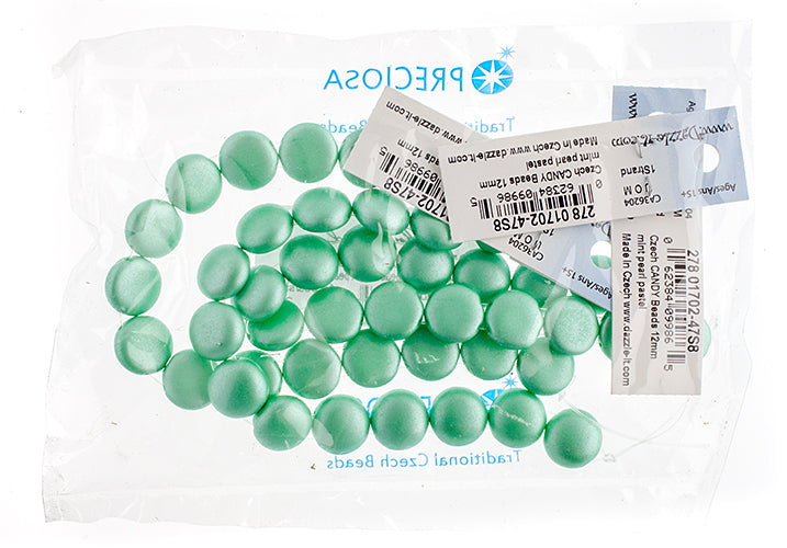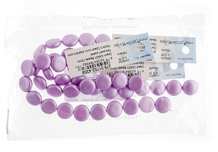 Czech Candy Beads 12mm 2 Holes Opaque Pearl Pastel