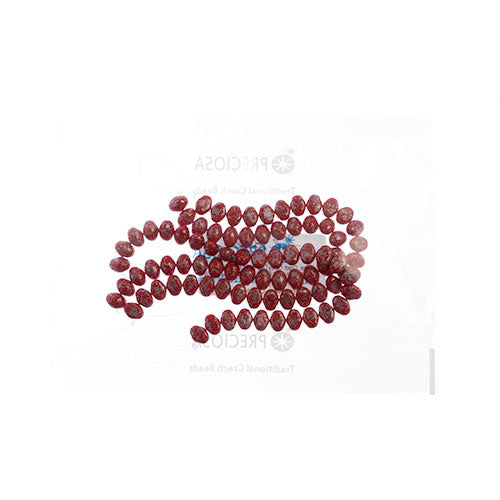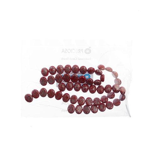 Czech Candy Oval 2 Holes Opaque Red Silver Speckled