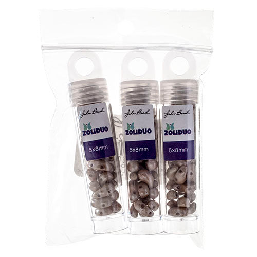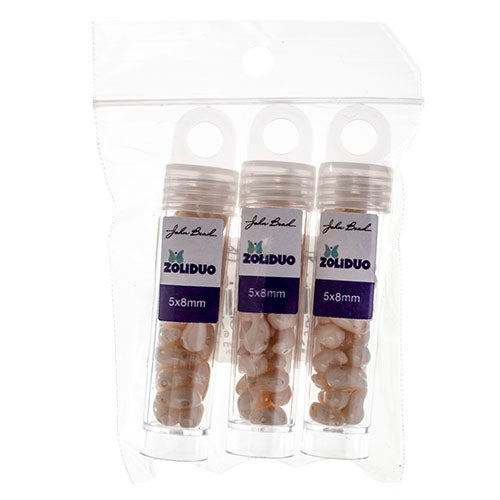 Czech Bead Zoli Duo Left 2-Hole 5x8mm 6.5g Vial Alabaster Luster Shades