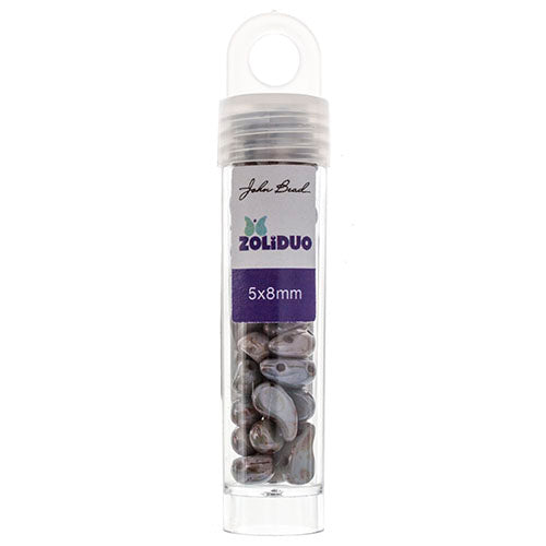 Czech Bead Zoli Duo Right 2-Hole 5x8mm 6.5g Vial Alabaster Luster Shades