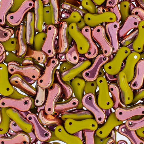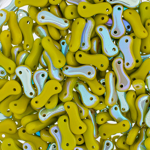 Czech Glass Bead Link 3x10mm Opaque Green Shades