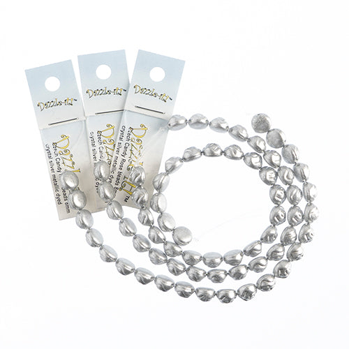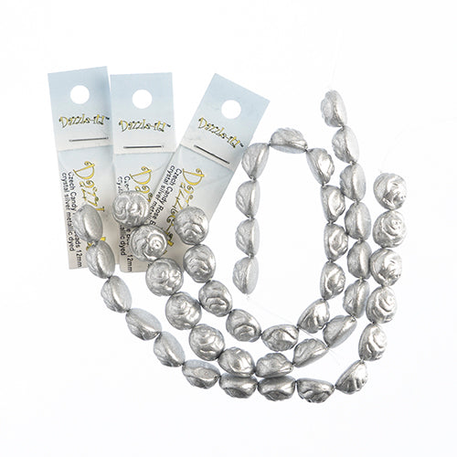 Czech Candy Rose Beads 2-Holes Crystal/ Silver Metallic Dyed