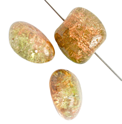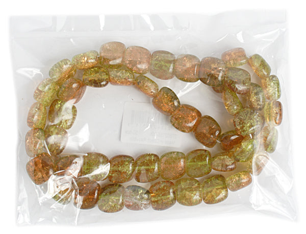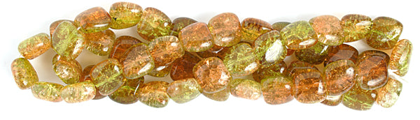 Glass Bead Cracked 13x15mm Strung Flat Nugget Two-Tone Green/Brown