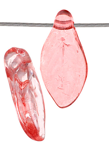 Glass Bead Leaf 6x12mm Crystal Pink Hole Side To Side Strung