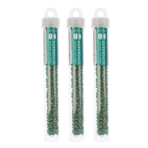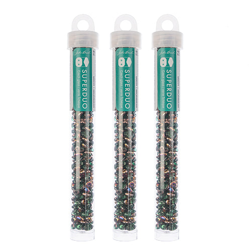 Matubo Czech Super Duo 2-Hole apx 22g vials Emerald Shades