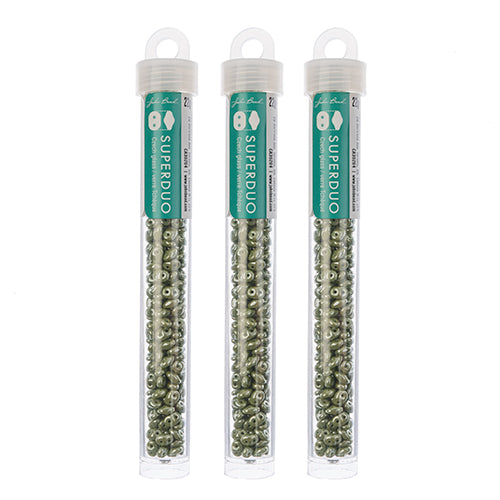 Matubo Czech Super Duo 2-Hole apx 22g vials Opaque Green Shades