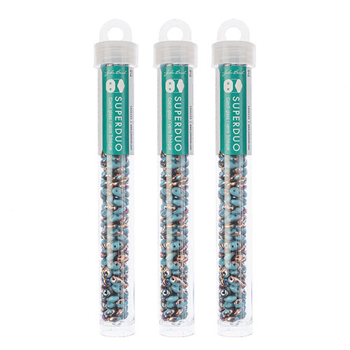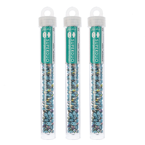 Matubo Czech Super Duo 2-Hole apx 22g vials Turquoise Blue Shades