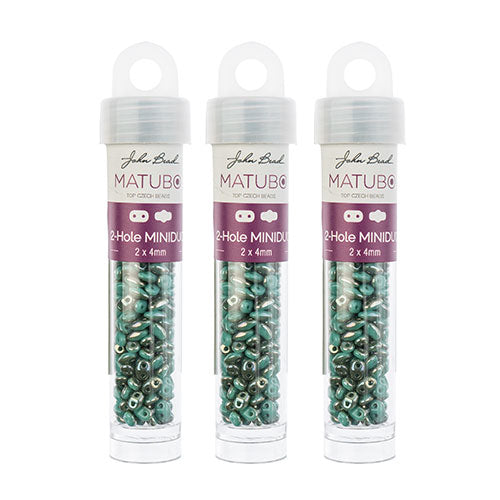 Matubo Czech Miniduo 2-Hole apx 13g Vials Turquoise Green Shades