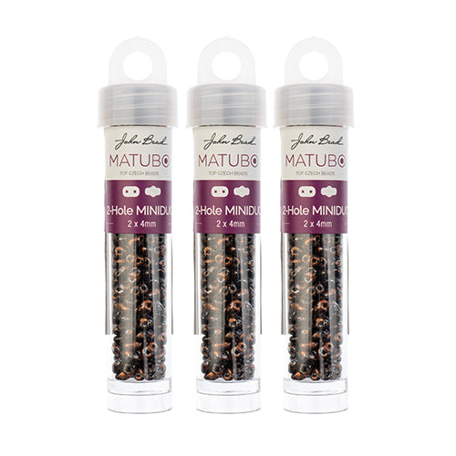 Matubo Czech Miniduo 2-Hole apx 13g Vials Tweedy Jet Shades