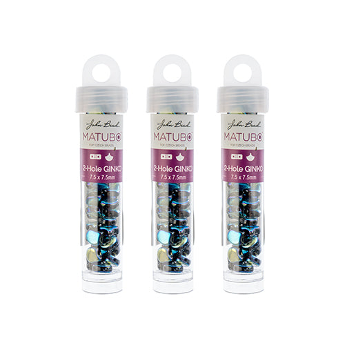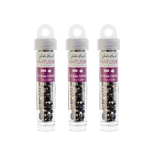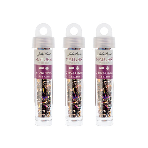 Matubo Czech Ginko 2-Hole apx. 12g vials Opaque Jet Shades