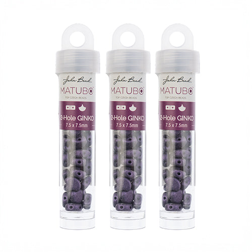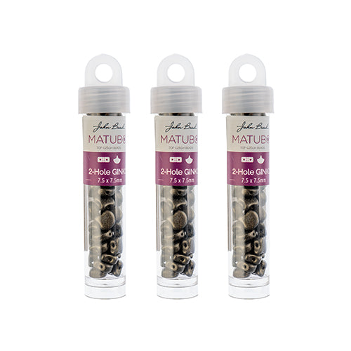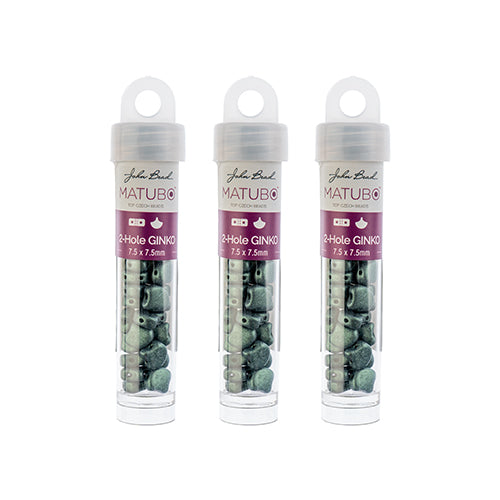 Matubo Czech Ginko 2-Hole apx. 12g vials Jet/Metallic Suede